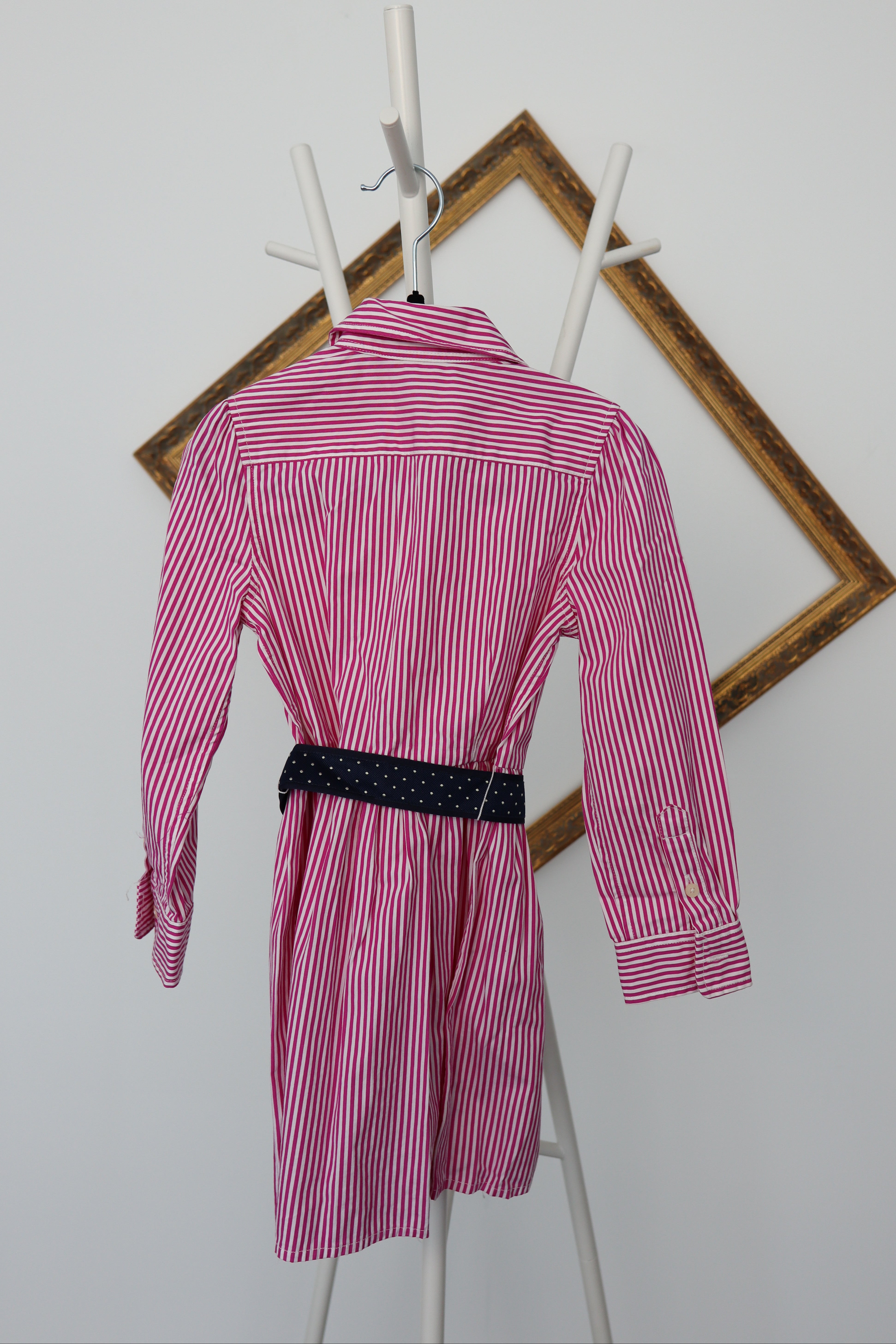 This Ralph Lauren shirt dress reflects the brand’s signature preppy aesthetic, combining classic tailoring with a fresh striped pattern. Cut in a relaxed shirt-style silhouette, the design offers a neat, polished look while maintaining comfort and ease of movement.