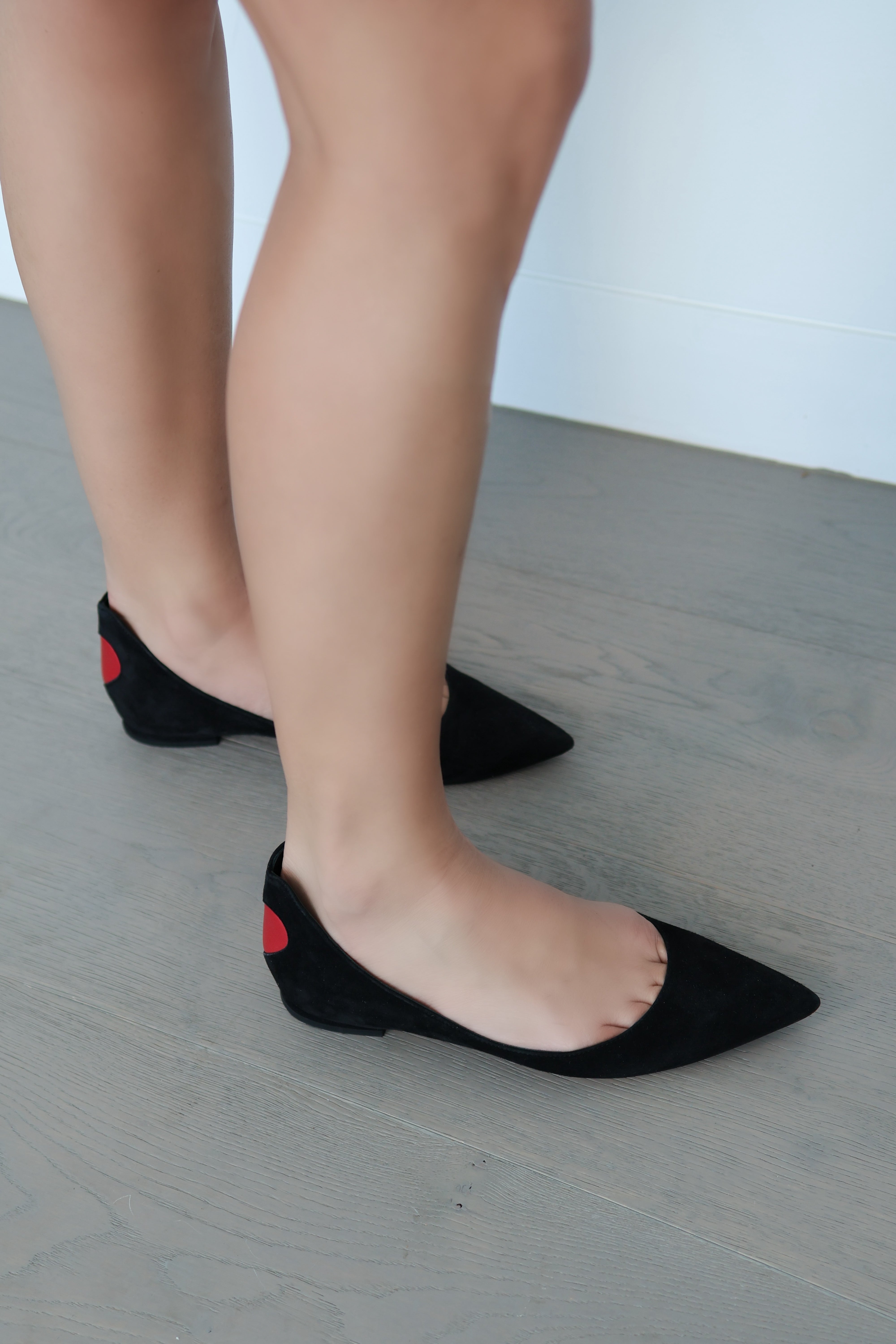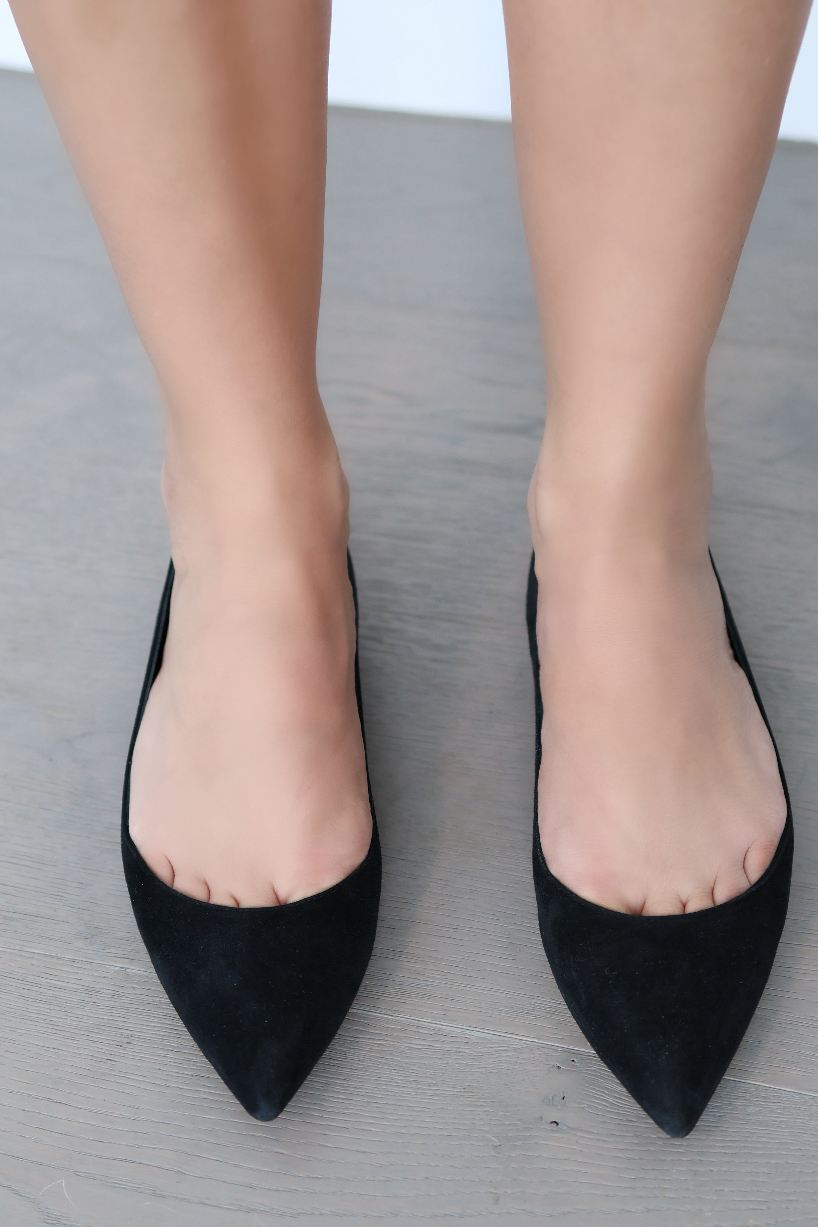 Crafted in soft black suede, the silhouette is finished with delicate detailing that enhances the classic ballet flat shape.