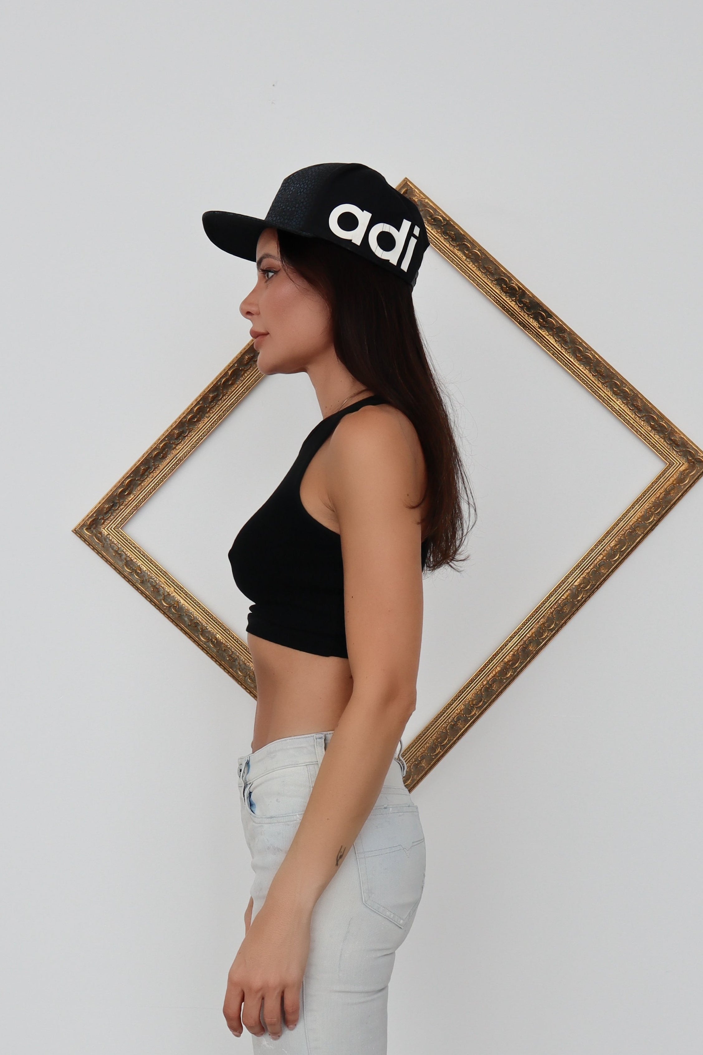 A bold accessory from the Rita Ora x Adidas Originals “Mystic Moon” collection, this black cap reflects the collaboration’s celestial-inspired aesthetic and streetwear edge.