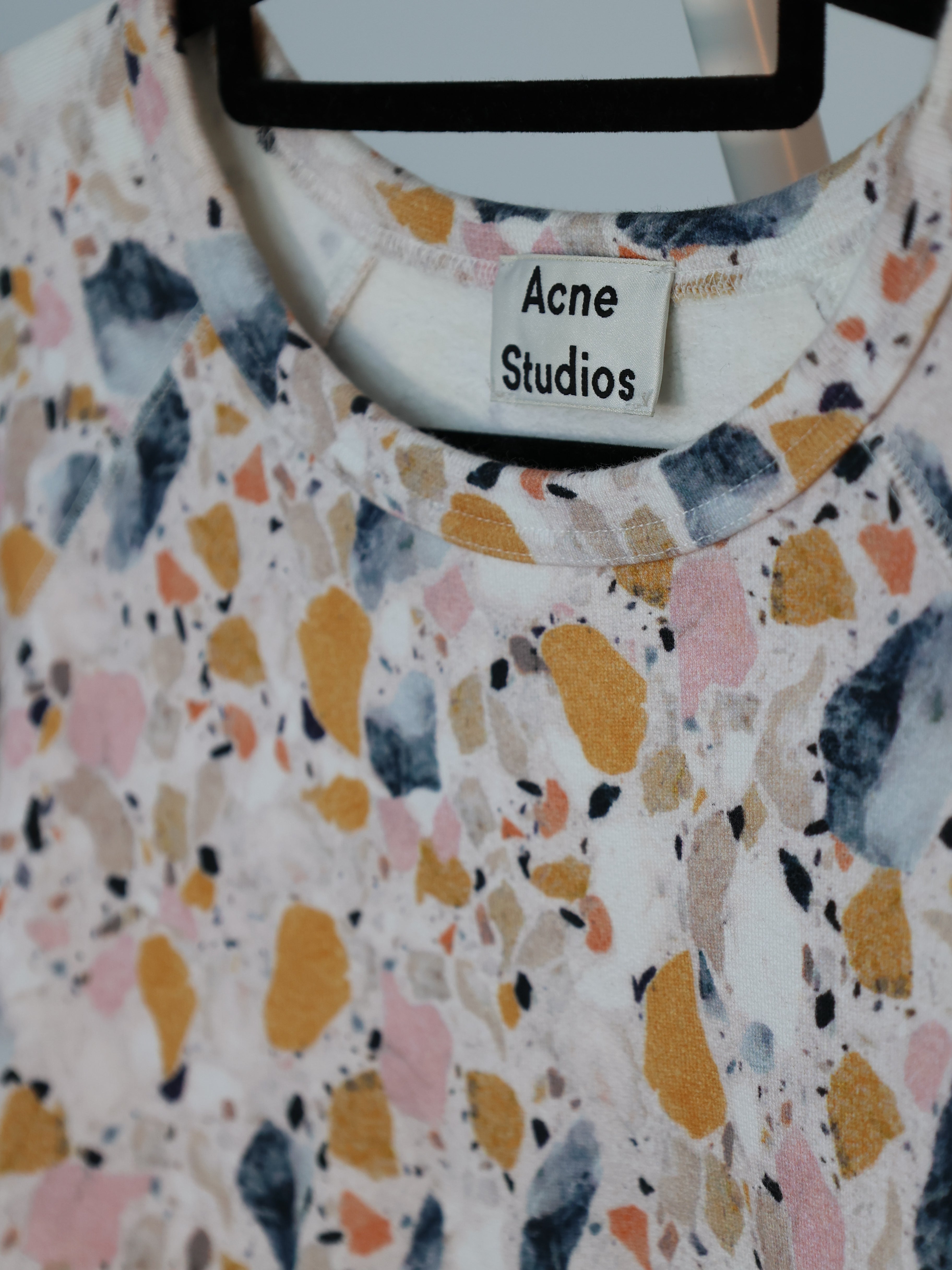 Featuring an all-over terrazzo-style floral print, the sweatshirt blends creative expression with a clean, minimalist silhouette.