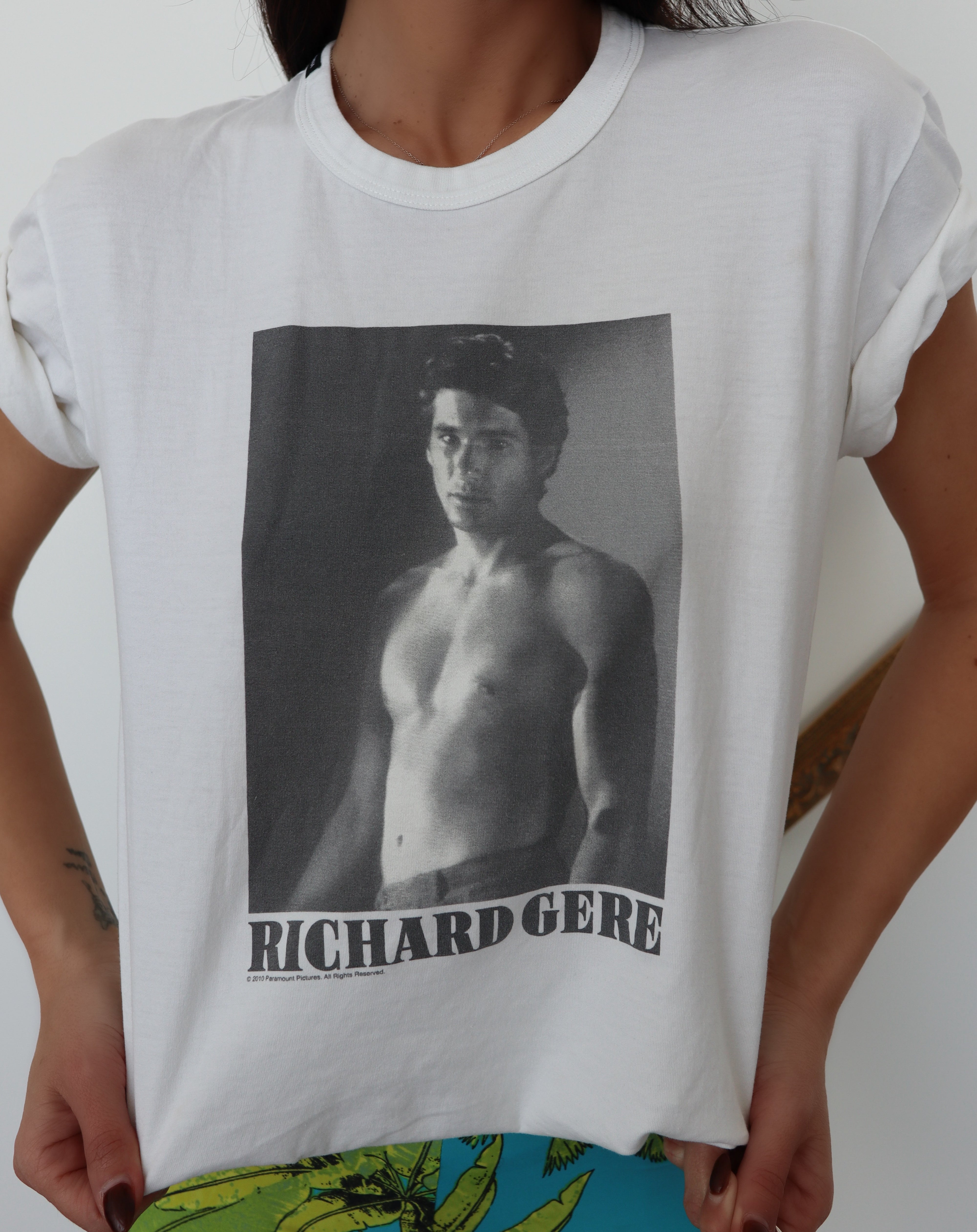 A rare Dolce & Gabbana graphic tee featuring an iconic black-and-white Richard Gere portrait — a standout piece for collectors of fashion, film, and pop-culture memorabilia. This tee captures the brand’s signature fusion of Italian attitude and celebrity glamour, making it one of those deceptively simple pieces that becomes the hero of an outfit.